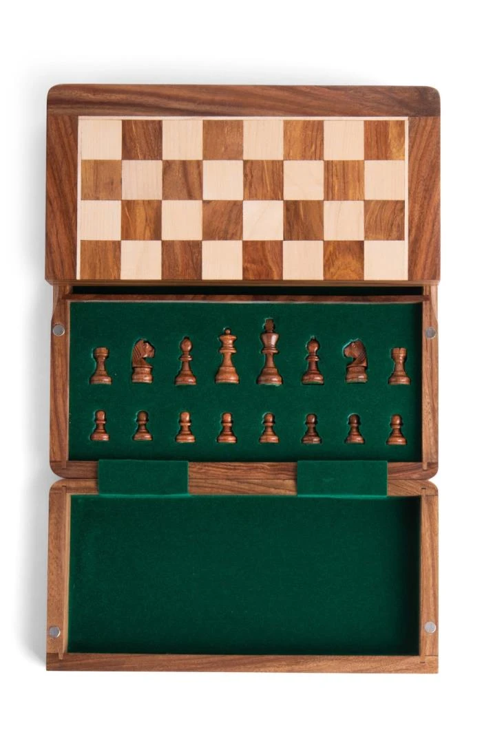 Materials: solid acacia and boxwood hardwood construction.Measurements: 10×10 inch board size.Additional queen included, magnetic pieces for easy transport and piece storage included.
