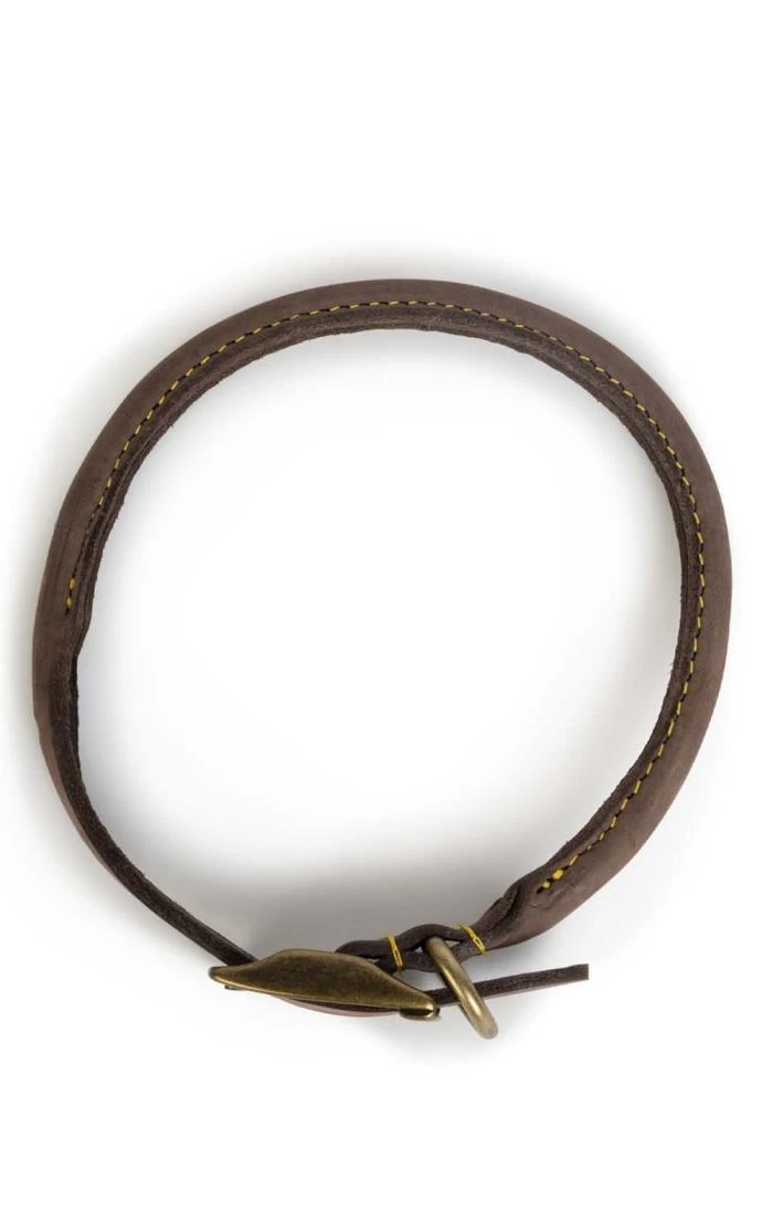 This 18 inch round leather dog collar is made from top-grain bridle leather to ensure the highest standards of quality. Designed for dogs with longer coats so that less hair is flattened by the collar, it has a robust nylon core and industrial nylon stitching for increased durability. The leather has also been treated with a special formulation to repel dirt, grease and oil, ensuring the longest possible lifespan for this handsome dog collar.