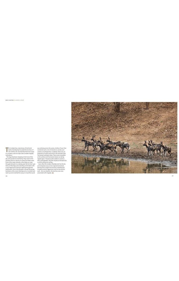 Now restricted to small populations and threatened by shoot-to-kill policies, habitat fragmentation, diseases from domestic dogs, climate change and snares, as well as natural predation from hyenas and lions, Africa’s wild dogs will be supported by all the royalties from this book.