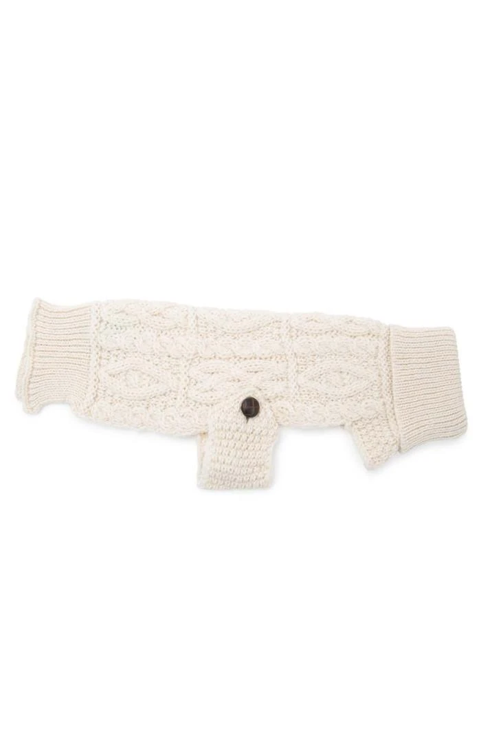 Treat your four-legged friend to superior comfort and warmth in traditional style with this beautiful aran dog coat. Featuring a cosy roll neck and snug belly strap affixed with a single button, this pure wool coat will definitely keep your dog ahead of the pack!