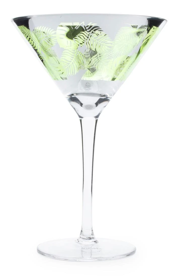 A real show stopping table setting, this hand crafted Tropical Leaves Glassware collection by Artland shimmers and shines with vibrancy and exoticism. To the outside, quivering fronds of rainforest plants are lasered out of a mirrored bowl while the metallic green inside of the glass breaks through to create a mesmerising play of light and colour that will intrigue and impress even the most discriminating of dinner guests.