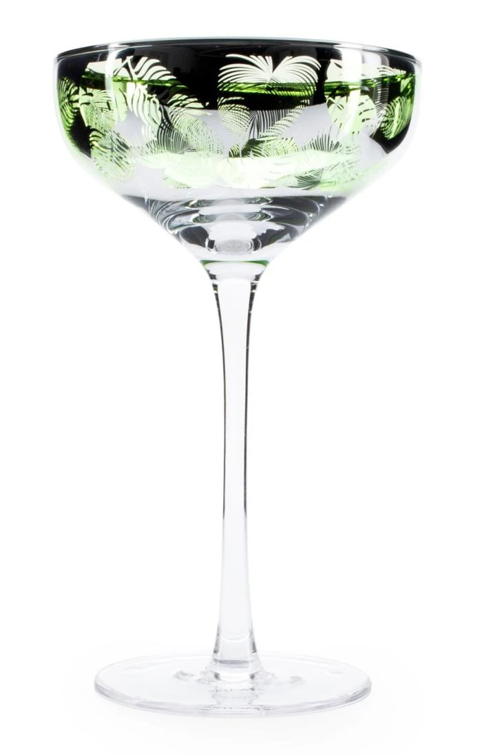 A real show stopping table setting, this hand crafted Tropical Leaves Glassware collection by Artland shimmers and shines with vibrancy and exoticism. To the outside, quivering fronds of rainforest plants are lasered out of a mirrored bowl while the metallic green inside of the glass breaks through to create a mesmerising play of light and colour that will intrigue and impress even the most discriminating of dinner guests.