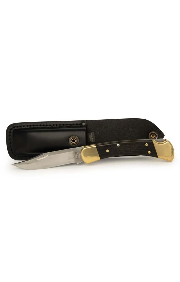 The countryman’s faithful companion, the Buck folding hunter knife is a sure and steadfast performer with a lock-back system that keeps the blade held in place when in action. Outstanding in its field, this good-looking knife features a curved handle in richly grained Macassar Ebony Dymondwood with brass highlights. Supplied with a genuine leather storage pouch.