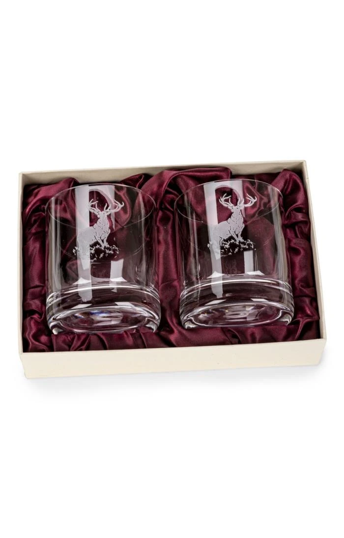 These beautiful Burns Crystal set of 2 10oz whisky glasses are hand engraved with iconic wildlife from the Scottish Highlands and make a beautiful gift.