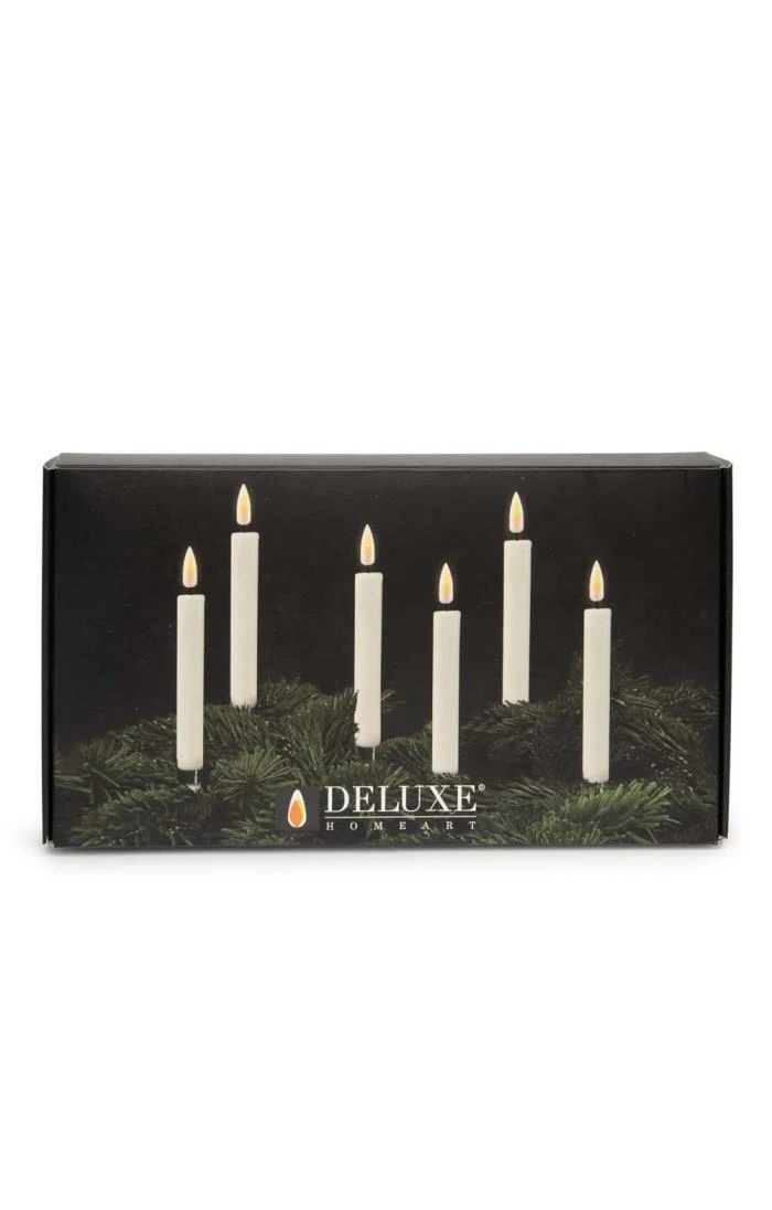 Brighten up your festive decorations with these realistic deluxe Christmas tree LED candles. This box of six upright tapered candles is a lovely way to get into a merry mood. The candles clip onto the branches of your tree with ease, and even though they are crafted using real wax and have a realistic LED flame, you won’t have to worry about accidents happening.