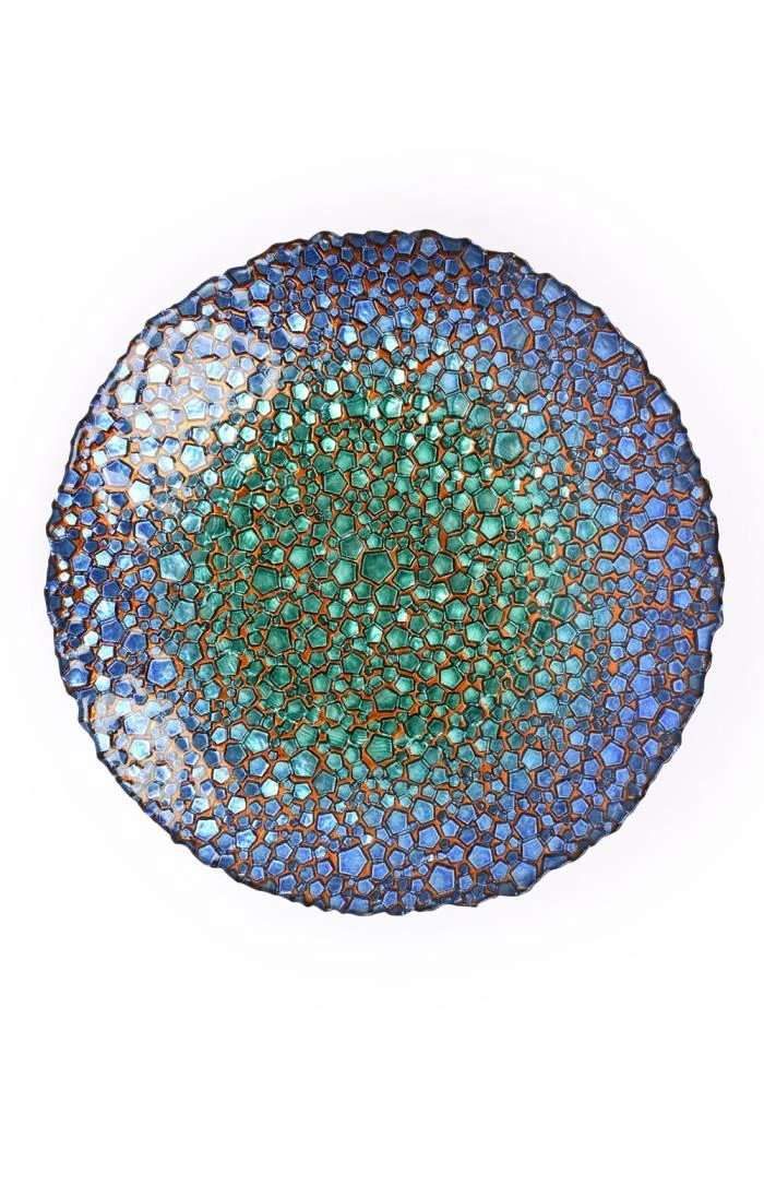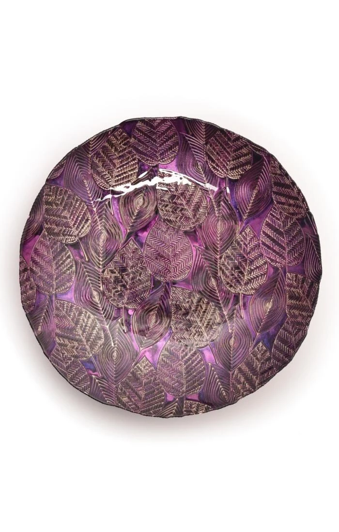 With its hand-painted patterns and tactile surface, this highly decorative bowl is a spectacular showcase for the adaptability and individuality of pure natural glass. Richly coloured and beautifully designed, create a point of interest in the home by displaying it in a prominent position as an enchanting ornament or extravagantly elegant fruit bowl.