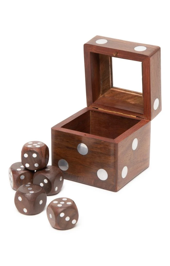 This handsome wood and brass dice box with hinged lid and glass panel contains five beautifully finished wooden and brass dice. An intriguing ornament as well as a source of much fun and entertainment for friends and family, this delightful piece makes an enchanting gift for game players with a penchant for timeless traditional pastimes.