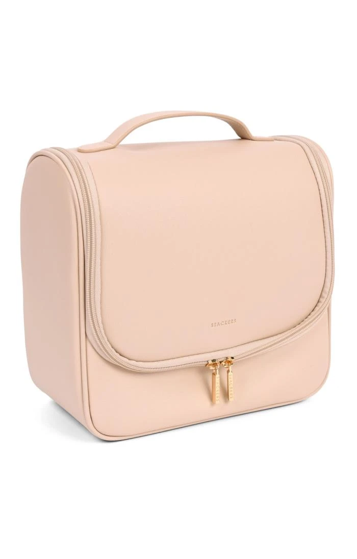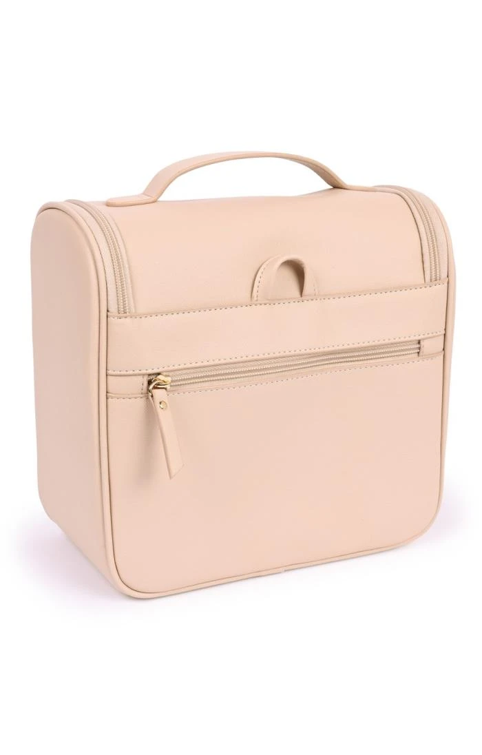 Dimensions: 26cm x 14cm x 27cm.Fits full size toiletries.Hanging hook included.Multiple compartments.Faux vegan leather exterior.
