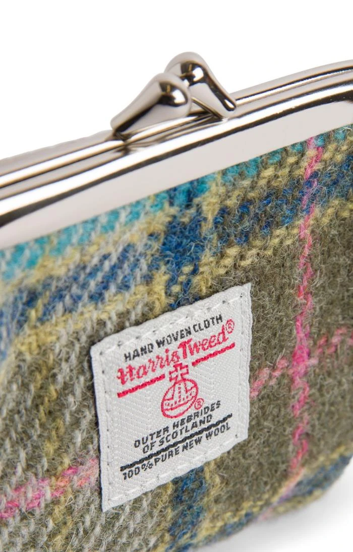 The Eigg coin purse is a beautiful and practical accessory crafted with genuine Harris Tweed, handwoven on the Outer Hebrides of Scotland. A metal clasp opens to reveal a small, compact space that is fully lined and perfect for storing your coins. The traditional design is completed with the Harris Tweed Authority certification trademark label.