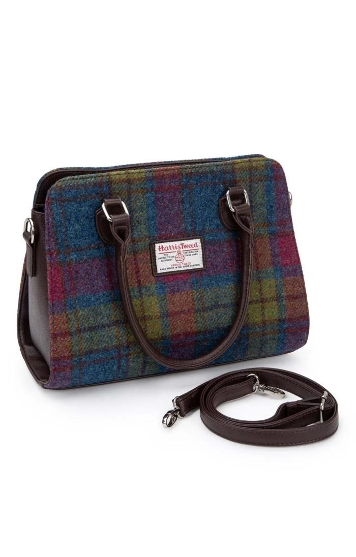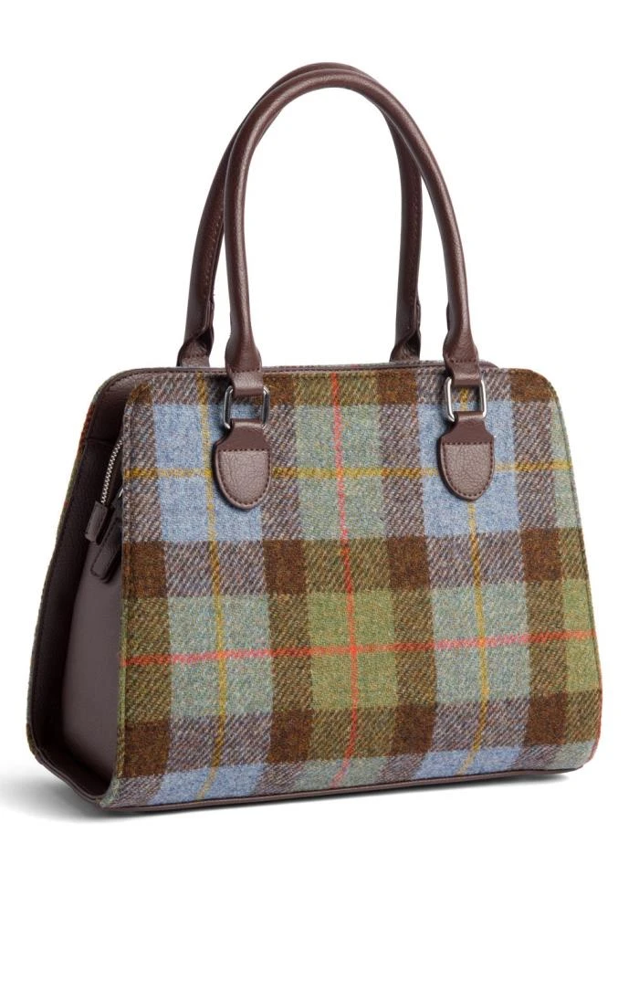The Findhorn two handle tote flaunts the gorgeous and sophisticated intermingled coloured yarns of genuine Harris Tweed. Expertly handcrafted, this versatile bag has room for more than just your essentials. Features include twin top handles, an adjustable and detachable shoulder strap and a small internal zip pocket and mobile phone pouch which can also be used to secure more valuable items. This everyday handbag is completed with a studded base for practical durability and the Harris Tweed Authority certification trademark.
