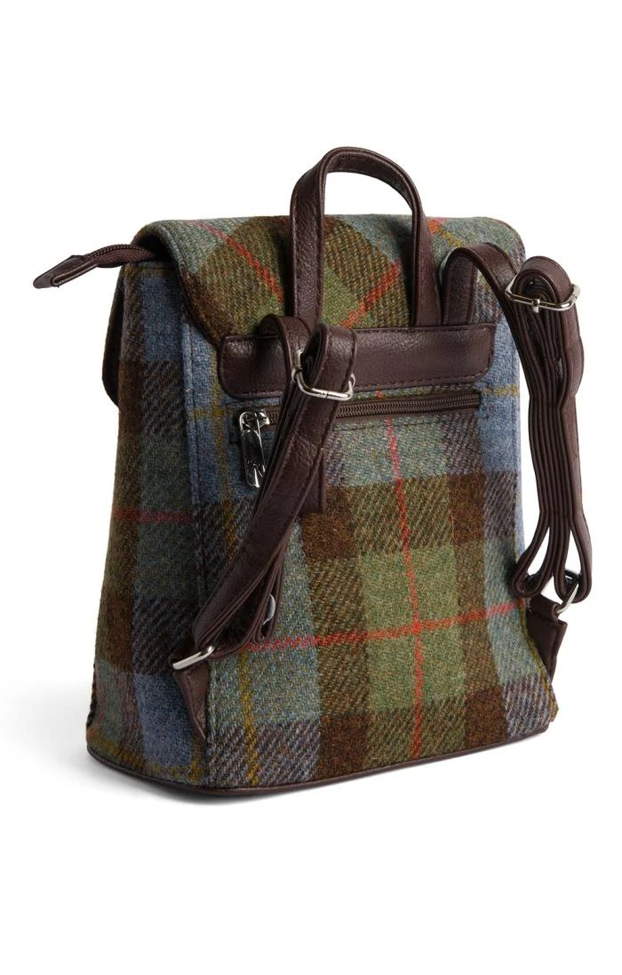 The Tummel mini backpack in 100% Harris Tweed brings this most traditional of fabrics bang up-to-date with a youthful and stylish design that will take you anywhere and everywhere. Fastening with a secure zip closure covered by a fold over top with magnetic stud, the fully adjustable shoulder straps are complemented by a carry handle at the top for maximum versatility. The fully lined interior comes complete with a mobile phone section. Harris Tweed Orb branding confirms the authenticity of the product.