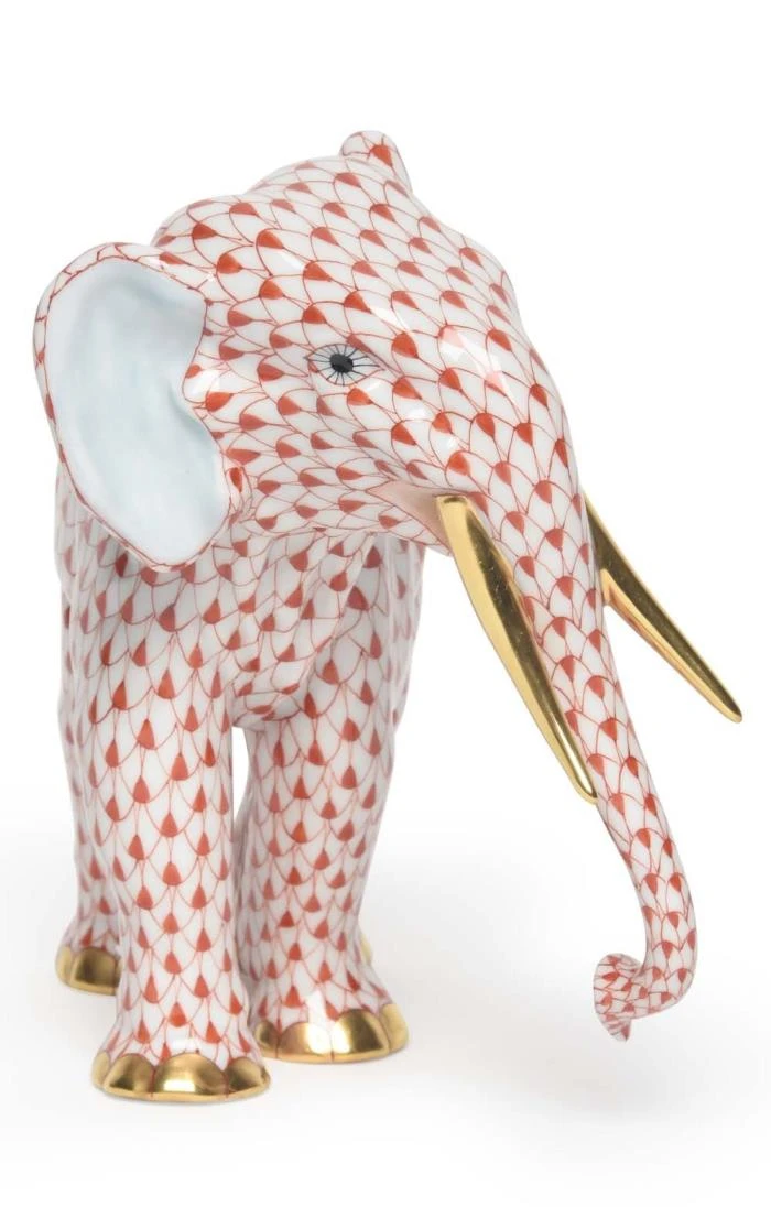 One of their most popular figurines, the Herend Elephant is a remarkable example of the finest handmade ceramics, with exquisite attention to detail. The carefully painted fishnet motif exhibits the centuries-old skill that has gone into the making of this exclusive Herend porcelain, while their signature gold gilding adds the final touch of luxury. This is a delicate yet striking piece that is guaranteed to become a family heirloom.