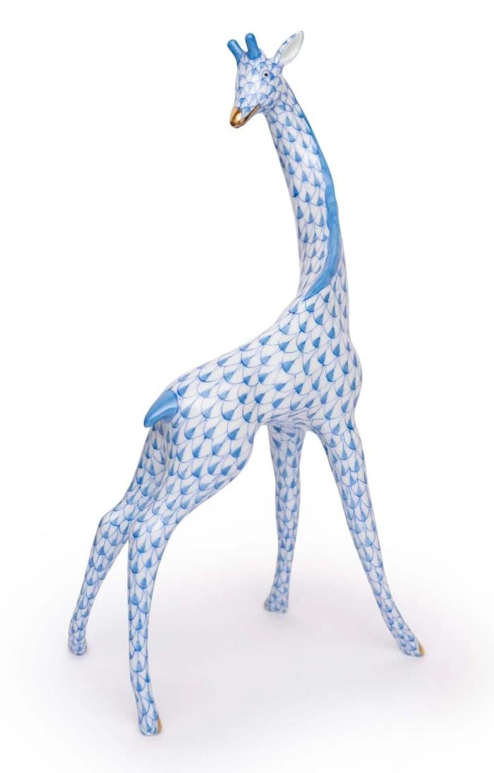 Hand painted in Herend’s trademark fishnet pattern, this 100% porcelain Herend Giraffe is a stunning representation of this appealing and enigmatic creature. Enhanced with gold coloured highlighting at the nose and toes, the gentle expression and leggy elegance of the giraffe is wonderfully captured to create an exciting ornament that will bring character and charm to any home.