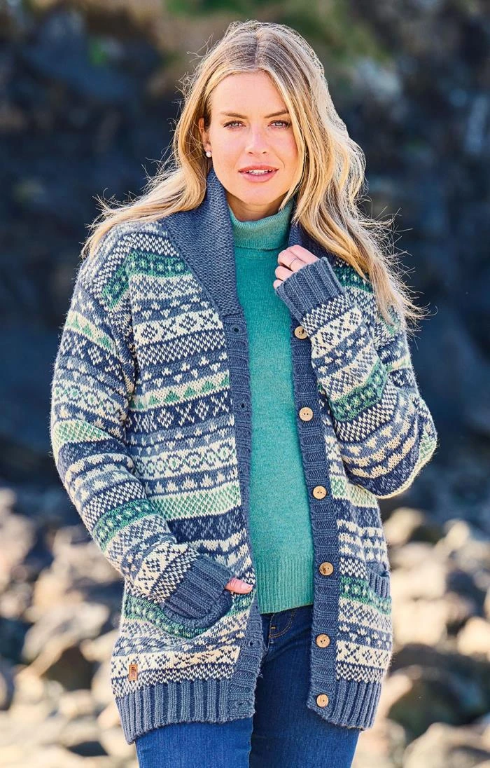 Hand-knitted in Nepal for an authentic artisanal effect, the Finisterre cardigan is a cuddly chunky-knit woolly that will keep you warm all winter long. Finished with a snug shawl collar, lower patch pockets and charming coconut shell buttons, this is the piece you’ll turn to for frosty morning dog walks, chilly days at home and cosy evenings on the couch.