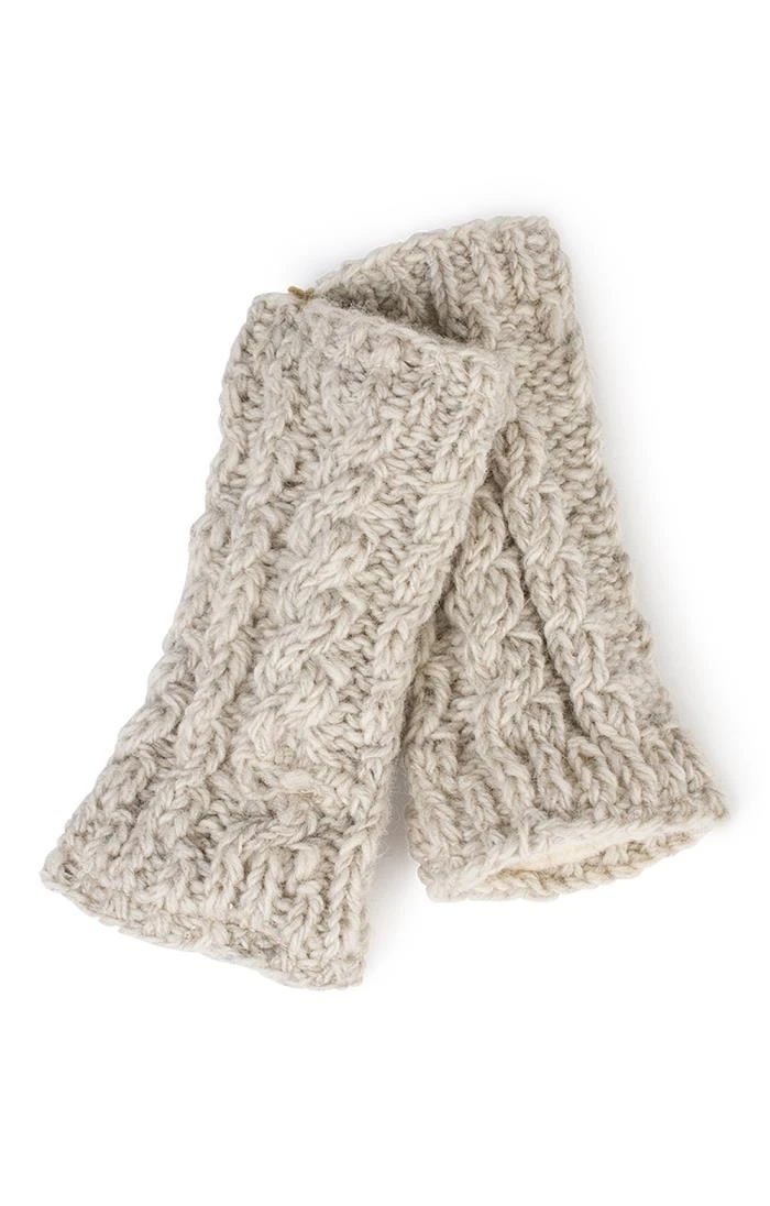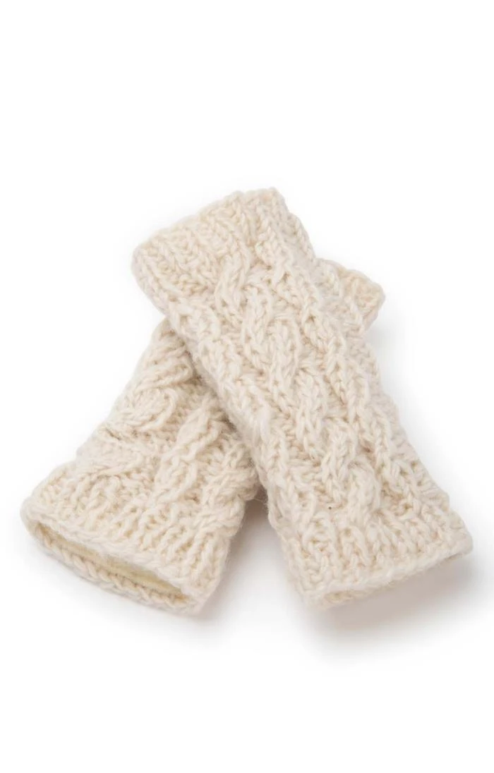 Hand knitted, pure wool handwarmers guaranteed to keep your hands warm and toasty this winter. Our ladies Aran wool handwarmers come in a variety of colours and will complement any winter look perfectly. Fleeced lined for comfort and with a cable knit Chamonix pattern, these are a perfect gift for a loved one or an indulgent treat for yourself.