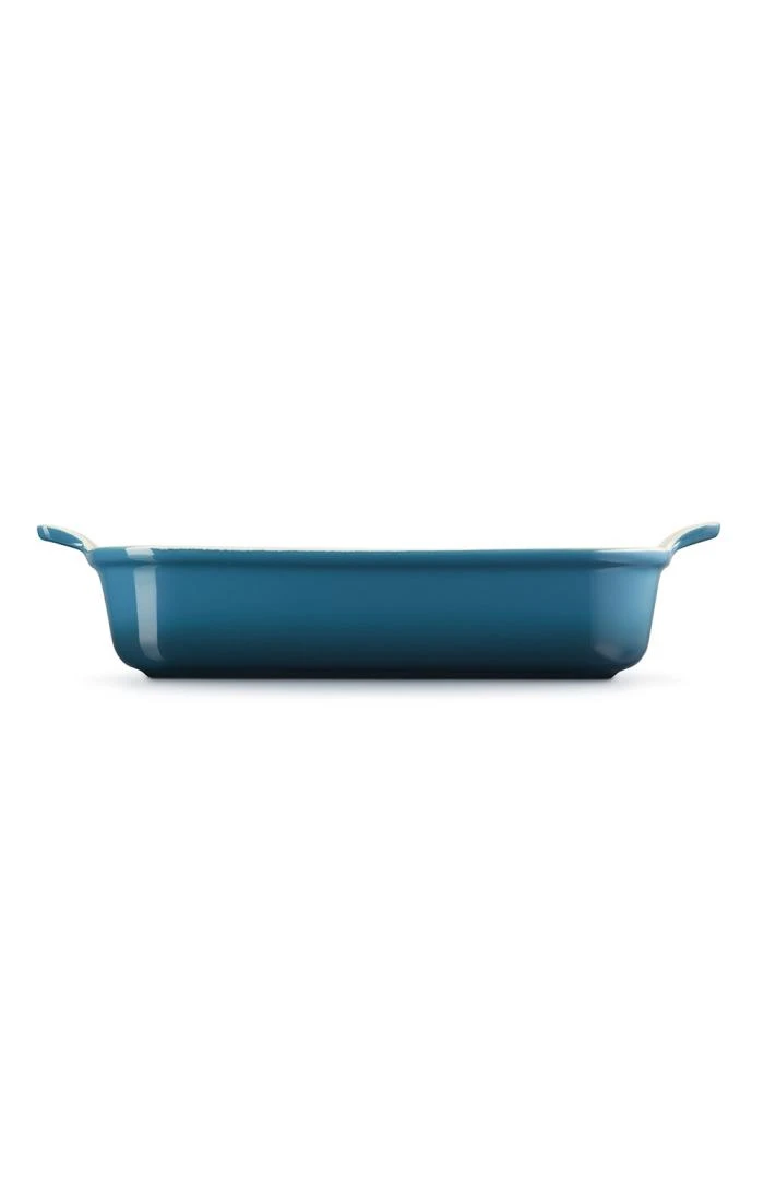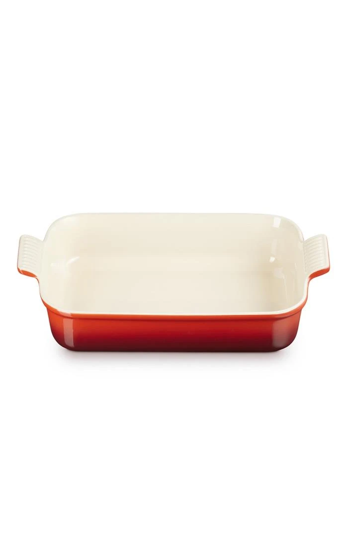 Crafted from quality glazed stoneware for an easy-clean finish and a scratch-resistant surface, the 32cm deep rectangular dish by Le Creuset is an indispensible ingredient in any cookware collection. Suitable for use at all temperatures from freezer to oven, the scalloped handles are comfortable to hold and carry even in oven gloves, while the iconic lines are an elegant addition to your dining table.