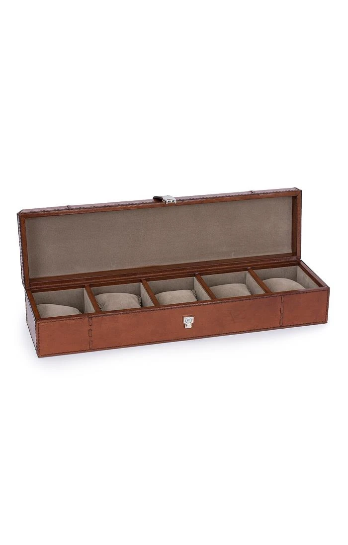 Made from premium, rich Buffalo hide leather, this watch box holds five watches and is the perfect way to store and protect your timepieces. With a traditional tan lining and a hinged lid, it has a brass-style clasp to give it that authentic heritage feel and a handy valet drawer to empty your pockets into at the end of the day. This would be a wonderful gift for the discerning gentleman in your life.