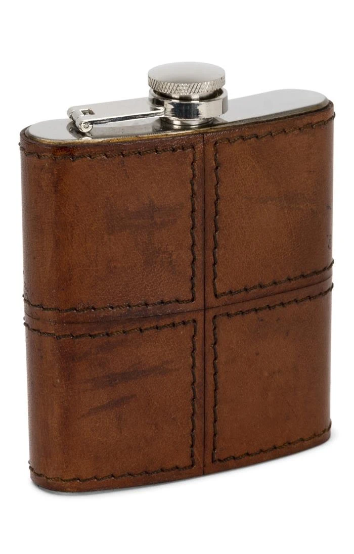 This classic handcrafted leather hip flask holds 200ml of your favourite tipple and makes an elegant gift to mark a birthday or anniversary.