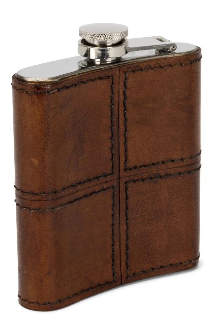 Stainless steel flask with leather trim.Capacity: 200ml.