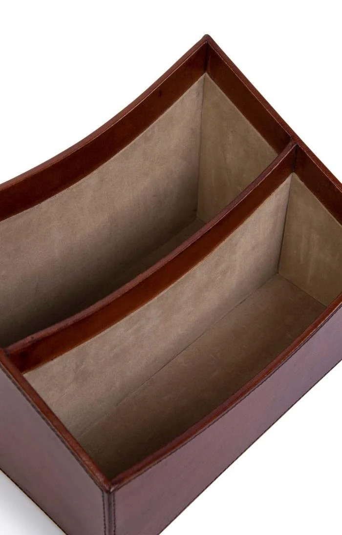 An impeccably complementary and practical desk accessory, this letter rack crafted from smooth premium leather will make the perfect finishing touch. Compartmentalised to aid the easy organisation of your correspondence, this beautiful letter rack is lined with sophisticated faux suede.