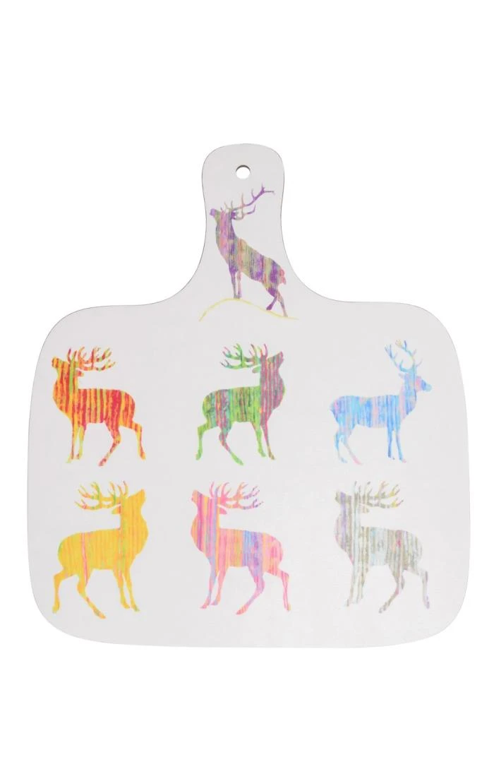 This medium chopping board in durable eucalyptus and melamine is a cut above the rest with its complementary yet contrasting patterns on either side. Shaped with curved edges and an easy-to-grasp handle for effortless transfer of ingredients from board to pot, this colourful kitchen essential coordinates with both country and contemporary interiors.