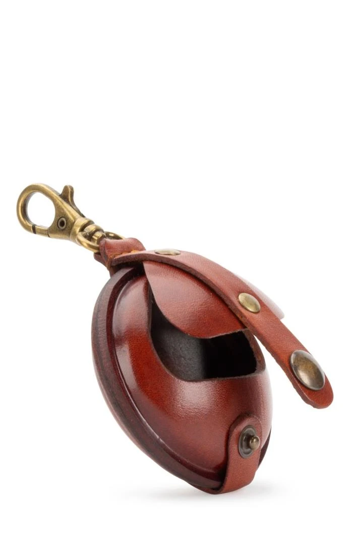 The medium ear defender pouch is crafted from leather with a brass popper fastening and belt clip, purpose designed to keep items secure in the field.