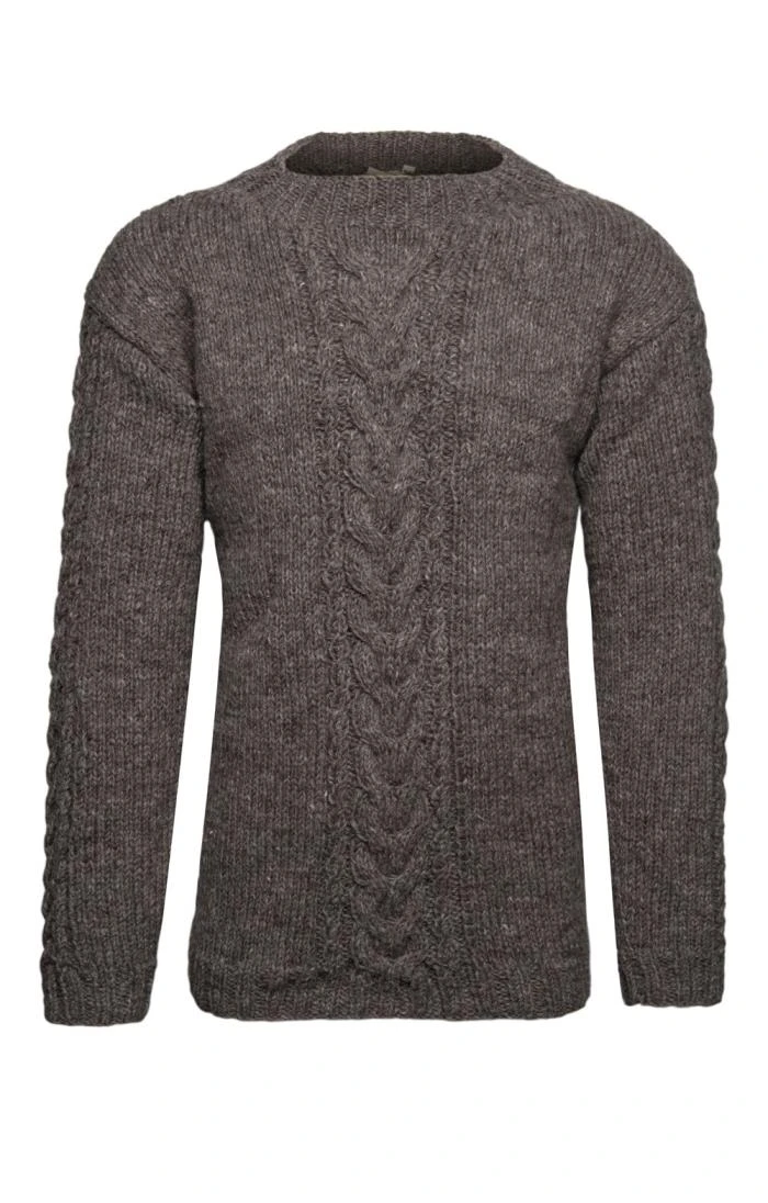Hand made in Nepal from thick 100% wool, this cosy cable sweater features a prominent cable pattern down the chest, back and sleeves. Cut in a relaxed fit for easy and effective layering over shirts, roll-necks and fine woollens, this is a charismatic chunky knit that you ll want to wear all winter long.