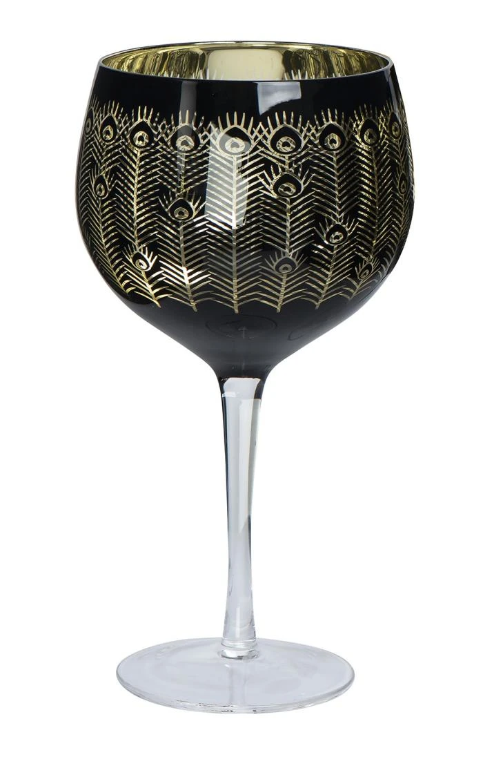 Mouth-blown and hand crafted by skilled glass makers, the Midnight Peacock glass is the perfect receptacle for special occasions. Each glass features a stunning peacock pattern cut on its mirror-finish black surface that lets the golden interior shine through and gives a spectacular reflected effect inside. Add sparkle and style to drinks parties and dinners.