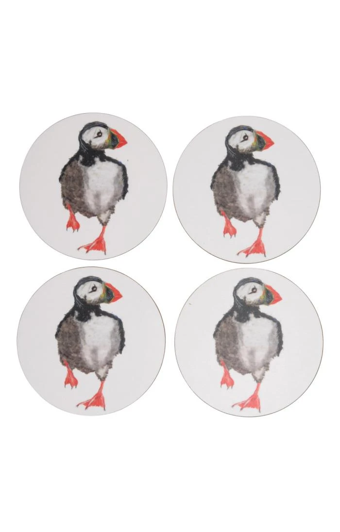 This colourful set of four round coasters will make a thoughtful house-warming or thank-you gift. Made with premium melamine with cork backing for high-performing protection for polished, painted and wooden surfaces, the intriguing original designs will be a talking point in any home.