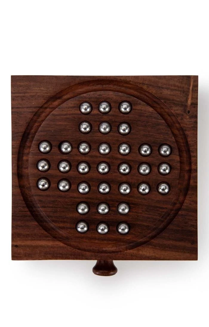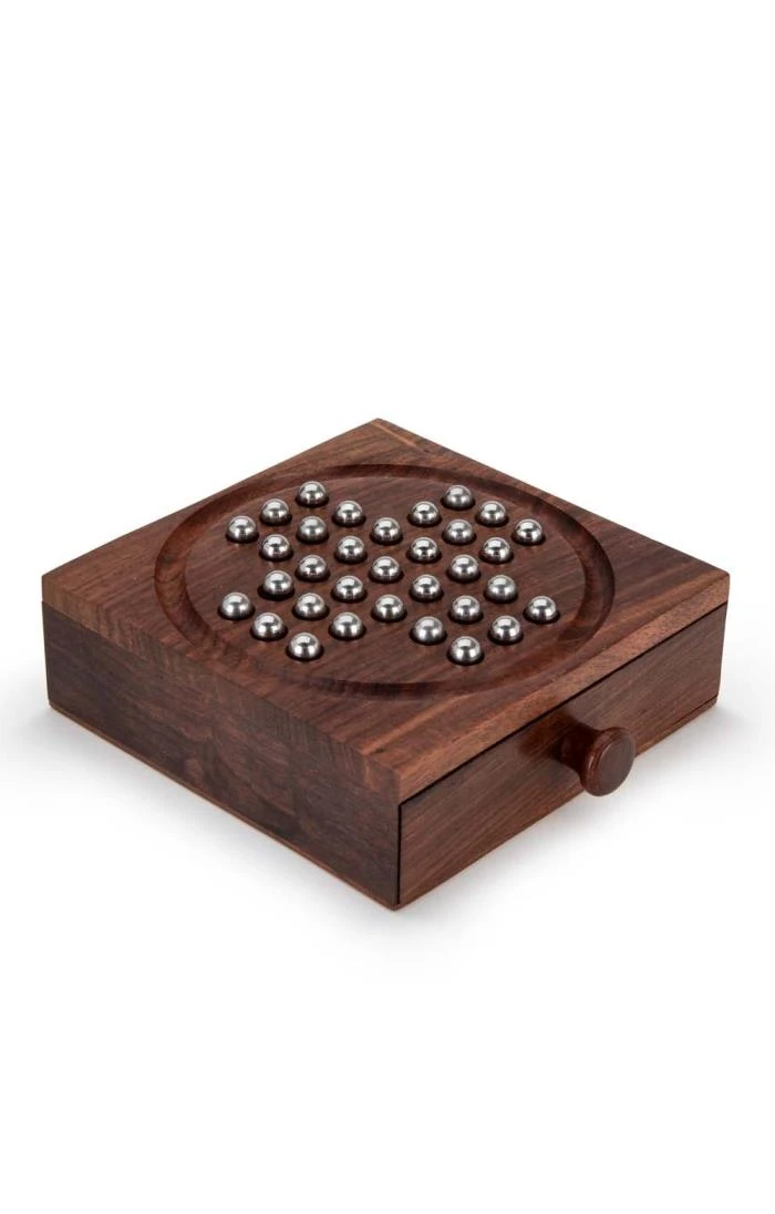 This beautifully crafted game of Solitaire with integrated drawer offers the perfect way to enjoy a little relaxation and down time. Carved from warm, natural wood, the drawer keeps the metal ball bearings safe between games. Fun yet challenging to play, this timeless game is designed for solo play.