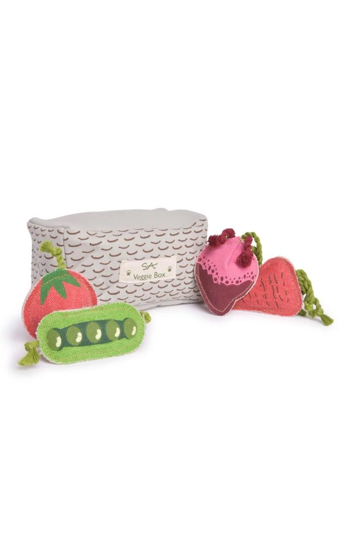 Treat your favourite four-legged companion to hours of amusement with this Sophie Allport box of dog toys. Inspired by gardening plots filled with home grown vegetables, these delightful rope and fabric toys are beautifully designed to represent a fun collection of our favourite British veggies. Complete with an internal squeaker they’re bound to love, they come with their own fabric storage box to help keep them tidy.