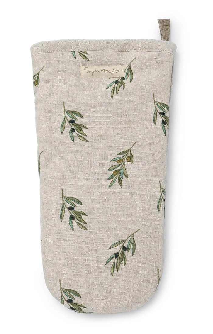 Add a rustic touch to your kitchen decor with this stylish Sophie Allport linen oven mitt, perfect for relaxing afternoons baking all your favourite cakes. Decorated with delicate artwork inspiring visions of Tuscan olive gardens and sun-drenched patios, this one-handed heatproof glove is crafted from premium outer fabric and lined with Terry towelling and a thermal resistant inner layer.
