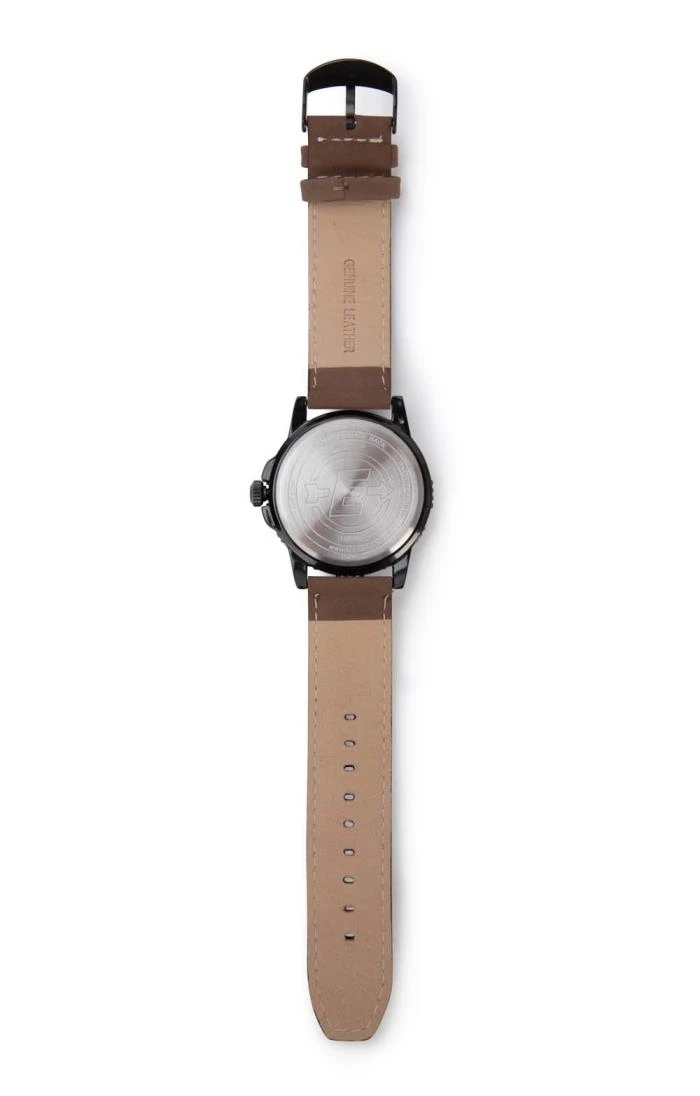Leather strap.Durable metal case.Easy set quick date.50 metres water resistant.