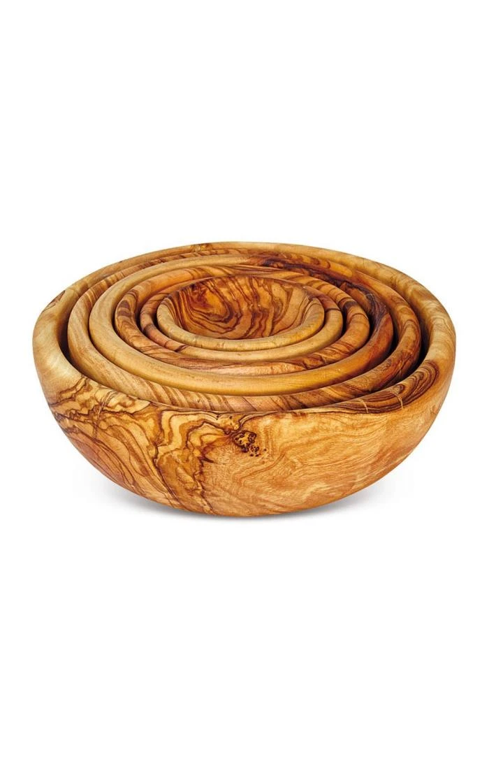 Six differently sized dishes sit snugly together in this exquisitely handcrafted olive wood bowl set. Superbly exhibiting the varying characteristics of natural wood with each piece displaying its own unique grains and textures, use for snacks, side salads or sweets according to portion size and preference. Ideal for gifting.